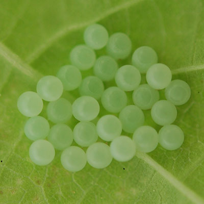 Взрослые особи выходят с мест зимовки весной, обычно в начале мая. После кормления около двух недель они спариваются, и самки начинают откладывать яйца. Яйца откладывают кучками на нижнюю сторону листьев с июня по август. Одна самка может отложить до 400 яиц. Яйца вылупляются через четыре-семь дней.