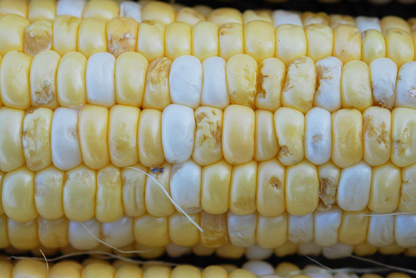 Рисунок 5. Повреждение зерен сладкой кукурузы, вызванное питанием коричневым