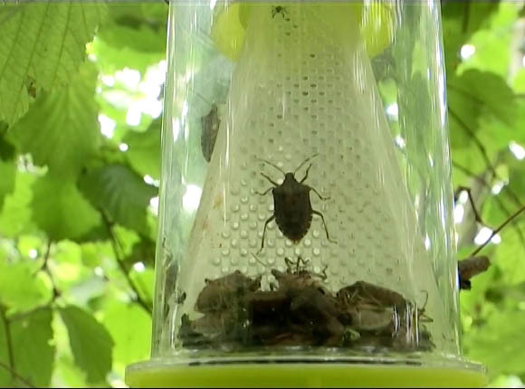 Рисунок 12. Ловушка, используемая с феромоном для наблюдения за популяциями коричневых мраморных клопов-вонючек.